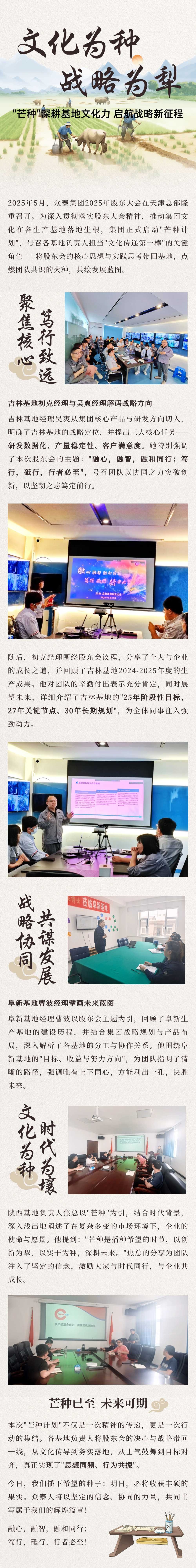 5月,為深入貫徹落實(shí)股東大會精神,推動集團(tuán)文化在各生產(chǎn)基地落地生根,集團(tuán)正式啟動"芒種計(jì)劃",號召各基地負(fù)責(zé)人擔(dān)當(dāng)